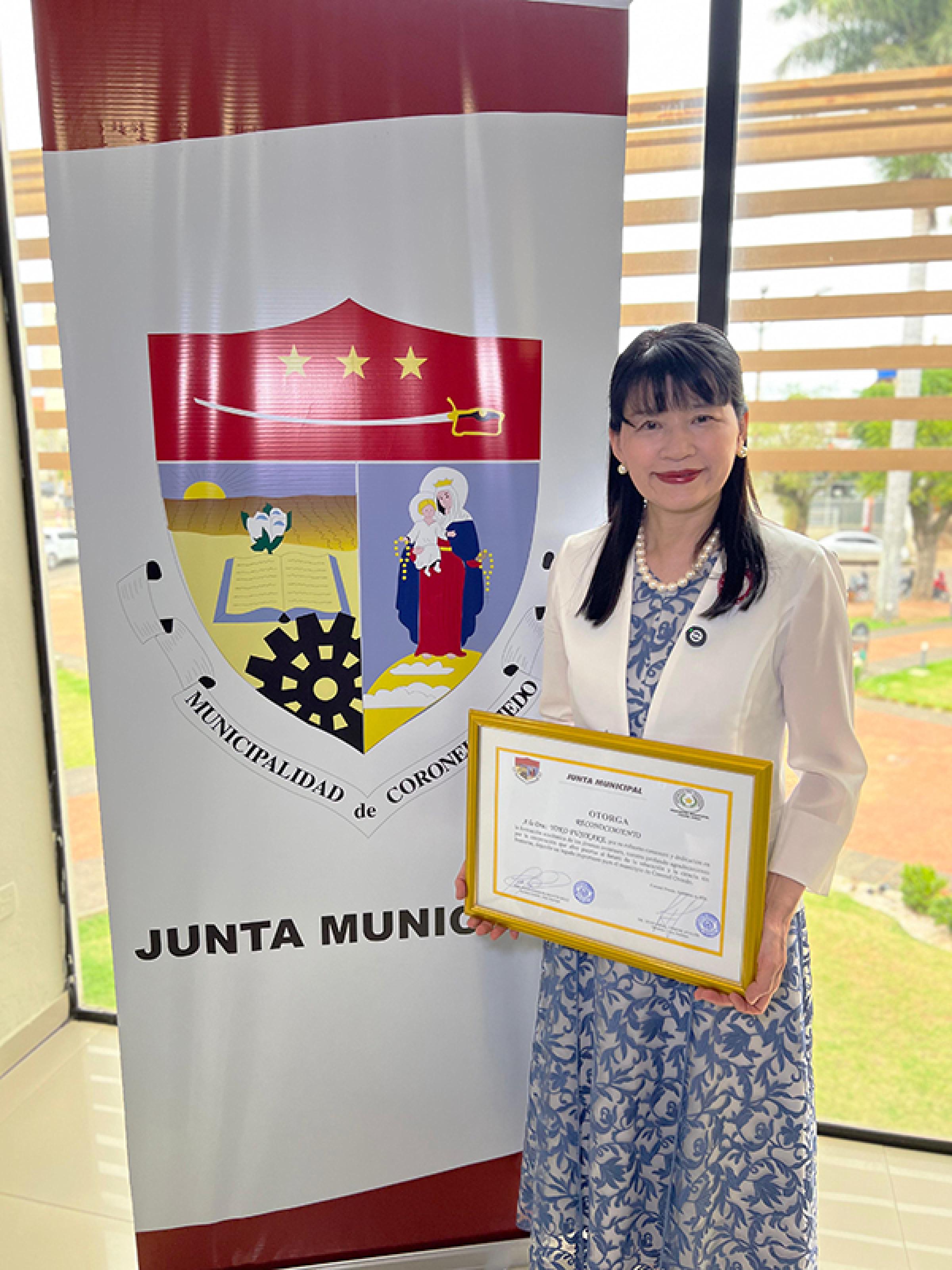 藤掛洋子教授がパラグアイ共和国コロネル・オビエド市議会表彰を受けました。